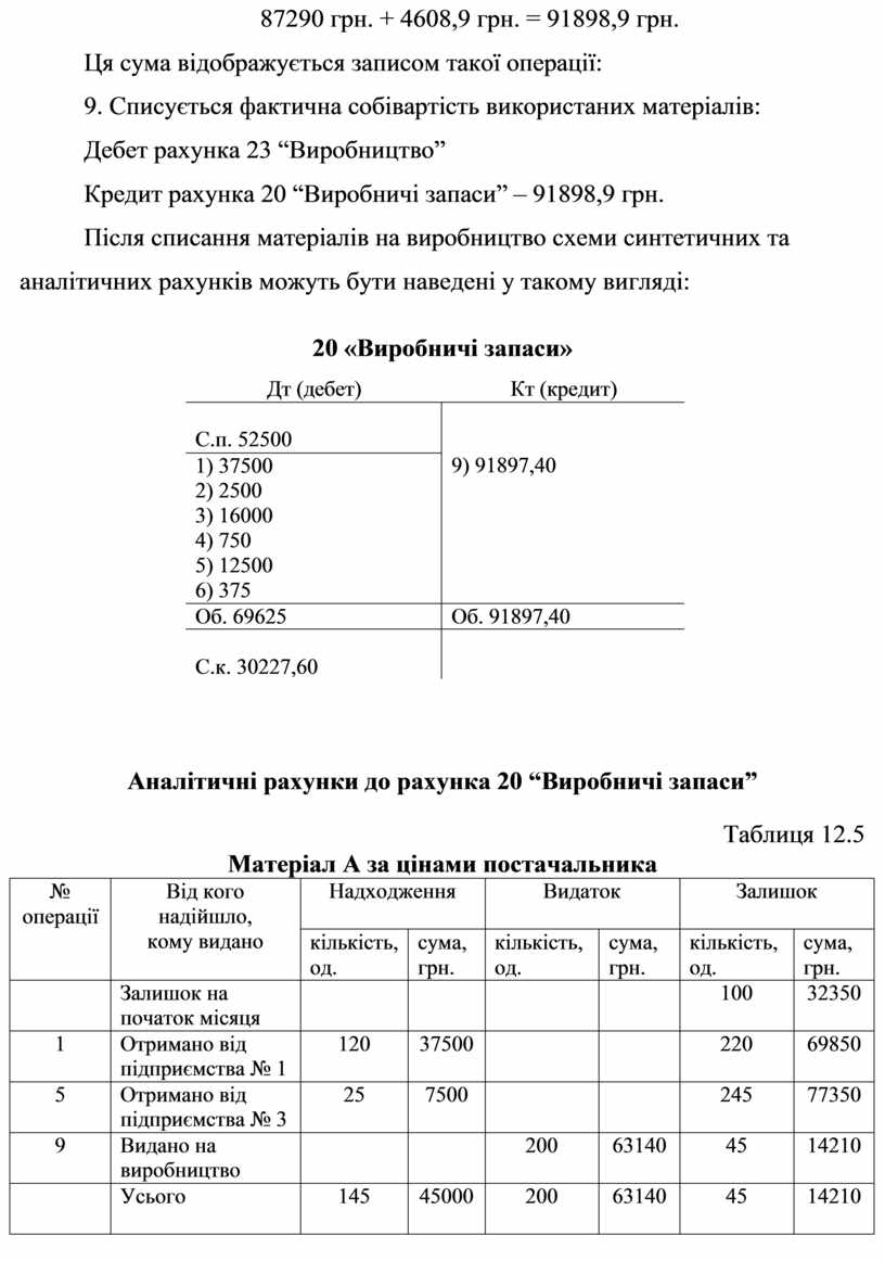 Кредит рахунка 20 “Виробничі запаси” – 91898,9 грн.