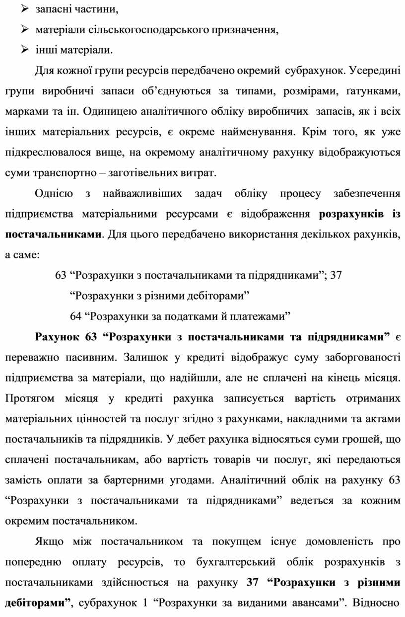 Однією з найважливіших задач обліку процесу забезпечення підприємства матеріальними ресурсами є відображення розрахунків із постачальниками. Для цього передбачено використання декількох рахунків, а саме: