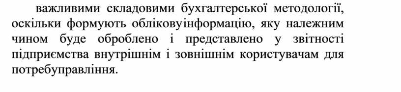 Таким чином, документація та інвентаризація є важливими складовими бухгалтерської методології, оскільки формують облікову інформацію, яку належним чином буде оброблено і представлено у звітності підприємства внутрішнім і зовнішнім користувачам для потреб управління.