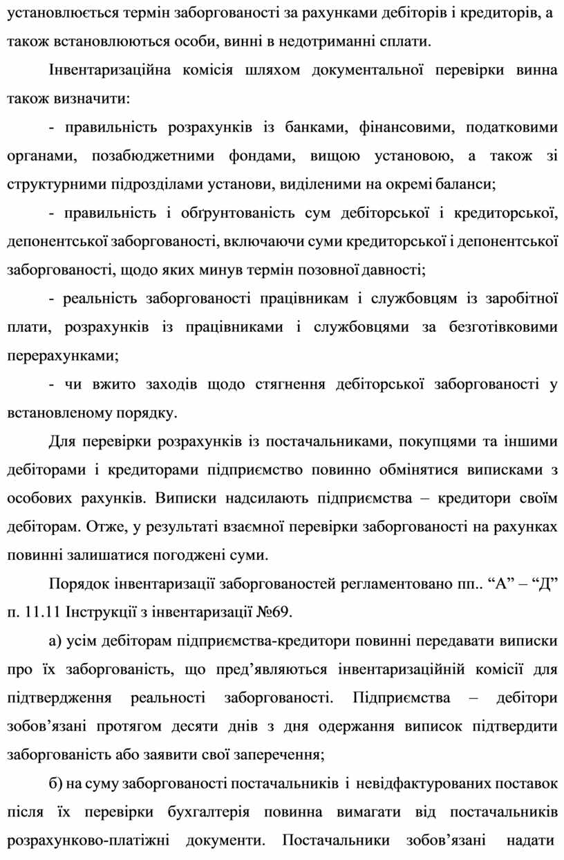 Порядок інвентаризації заборгованостей регламентовано пп.. “А” – “Д” п. 11.11 Інструкції з інвентаризації №69.