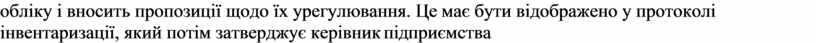 обліку і вносить пропозиції щодо їх урегулювання. Це має бути відображено у протоколі інвентаризації, який потім затверджує керівник підприємства