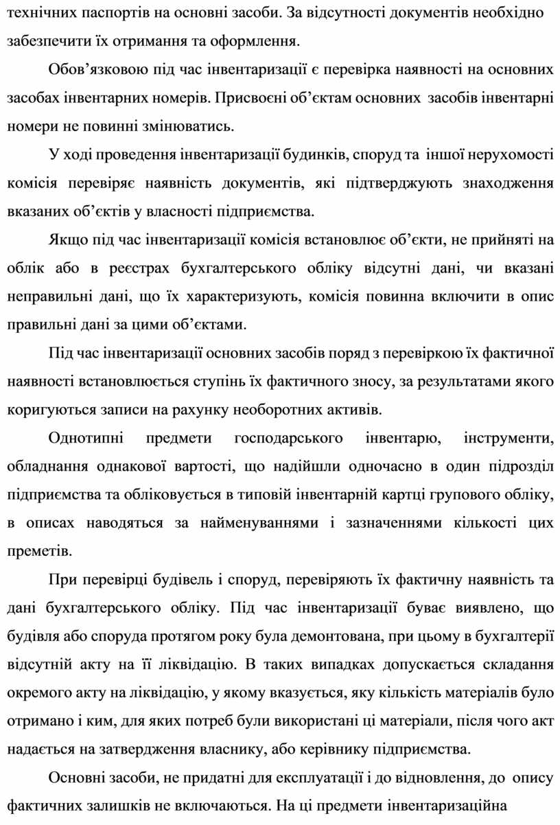 При інвентаризації основних засобів перевіряється наявність і стан будівель, споруд, незавершеного будівництва, інвентар та устаткування, земельні ділянки.