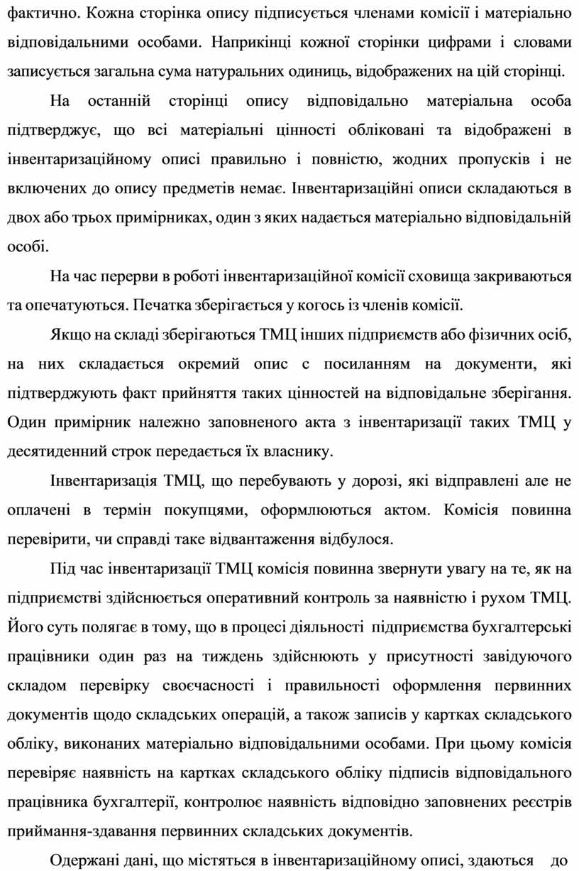 Інвентаризація товарно-матеріальних цінностей (далі – ТМЦ), відбувається на кожному підприємстві. Підчас інвентаризації ТМЦ перевіряють наявність матеріальних цінностей, що обліковують на балансових рахунках 20, 21, 22, 23, 24, 25, 26, 27, 28 та на забалансовому