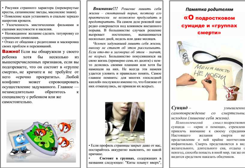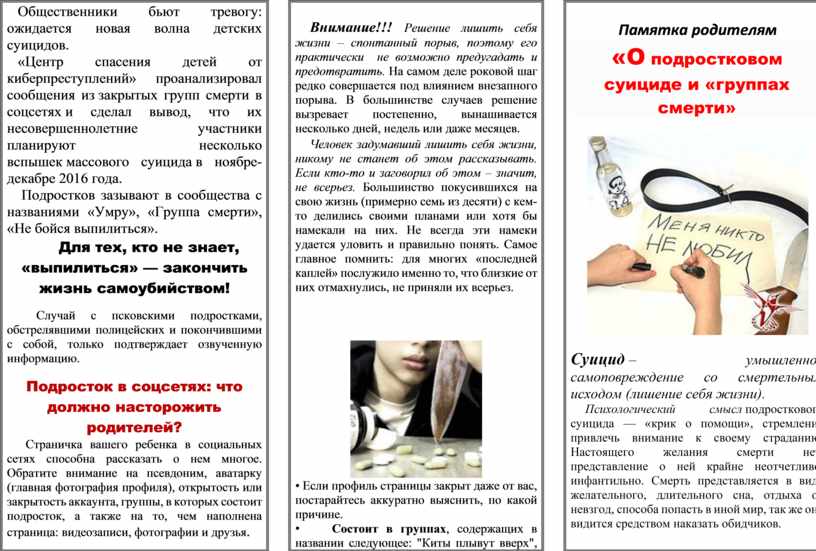 Памятка родителям «О подростковом суициде и «группах смерти»