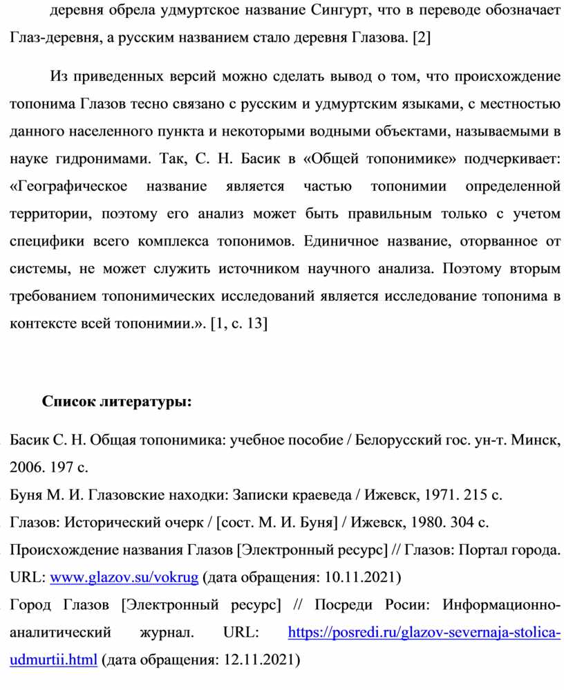 4. Происхождение названия Глазов [Электронный ресурс] // Глазов: Портал города. URL: www.glazov.su/vokrug (дата обращения: 10.11.2021)