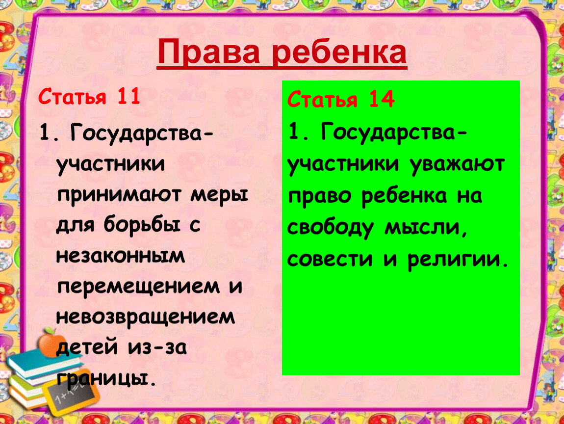 1. Государства-участники уважают право ребенка на свободу мысли, совести и религии.