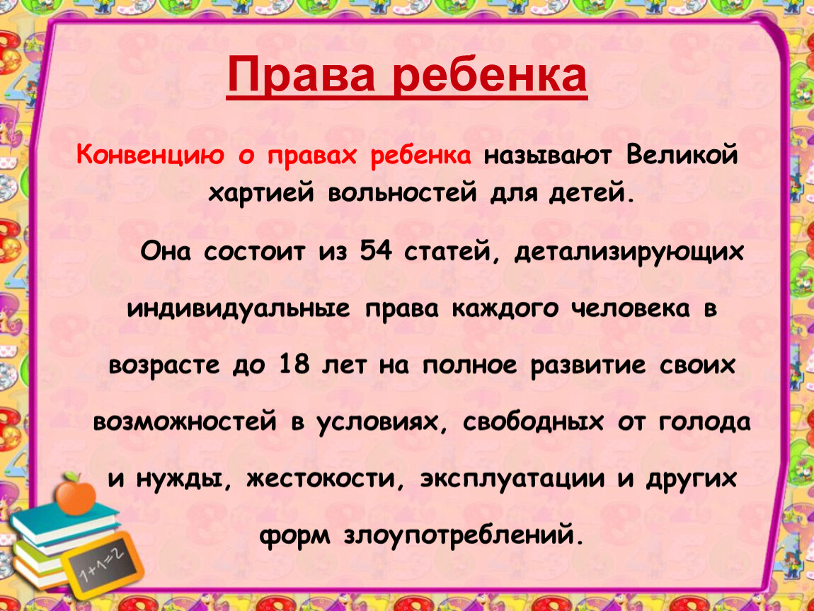 Конвенцию о правах ребенка называют Великой хартией вольностей для детей.