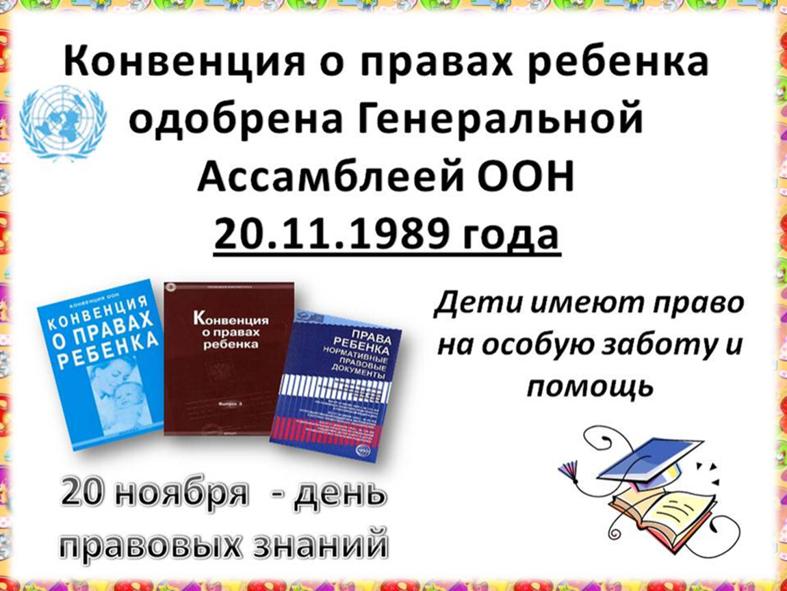20 ноября 1989 года Конвенция о правах ребенка была единогласно принята Генеральной Ассамблеей ООН.