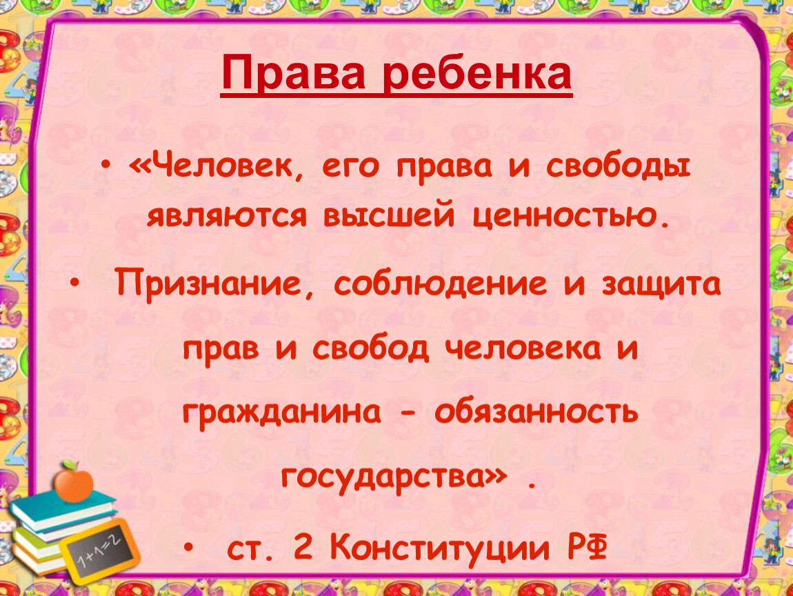 Признание, соблюдение и защита прав и свобод человека и гражданина - обязанность государства» .