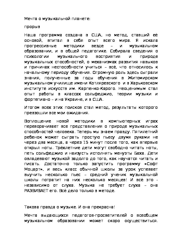 Музыка – опора для развития всего человечества-