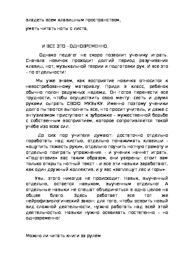 «О ТЕХНИКЕ ПИАНИСТА»