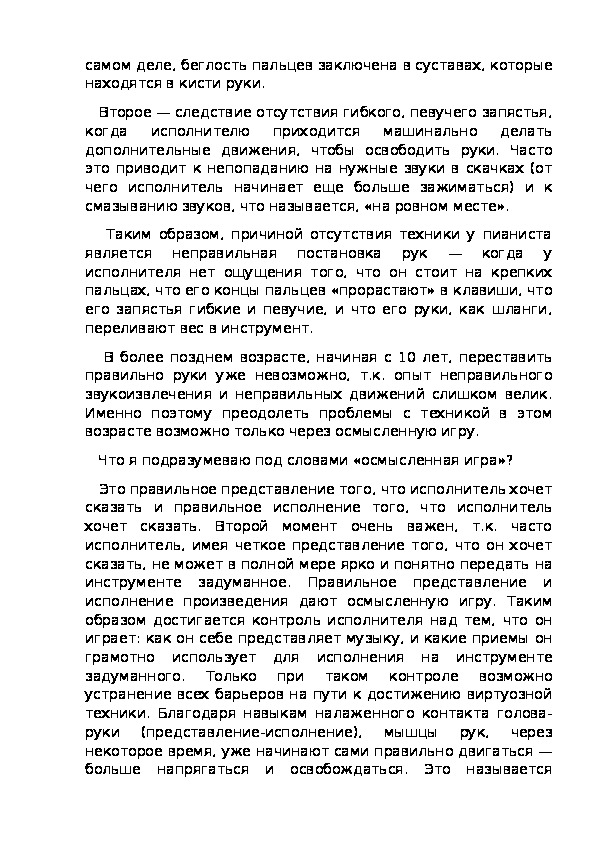 том, что беглость находится в самих пальцах, когда, насамом деле, беглость пальцев заключена в суставах, которые