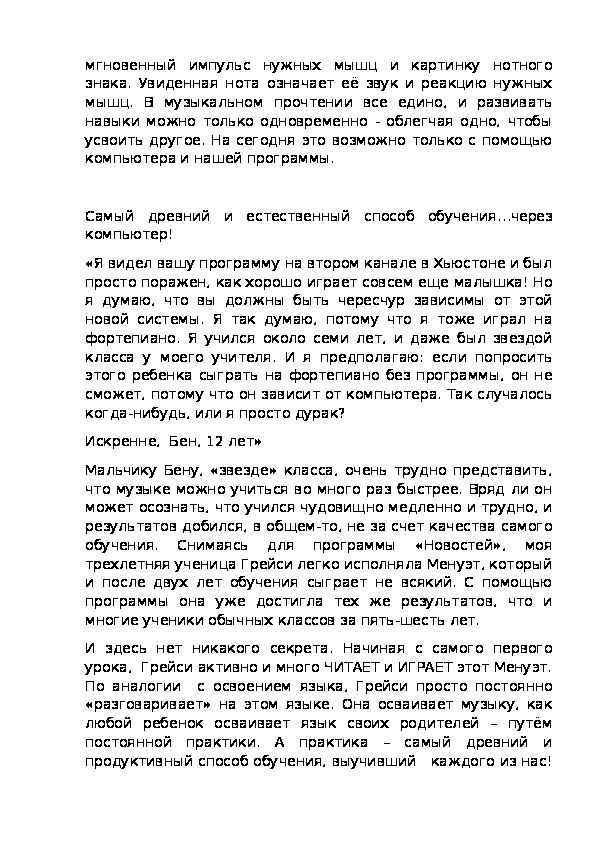 осваивают все школьные предметы. Дав детям музыкальный