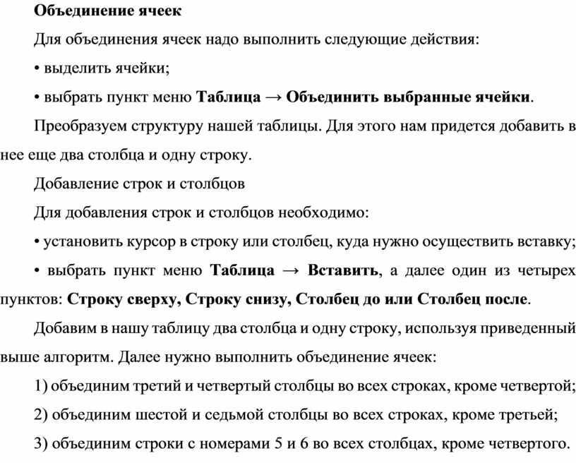 • выбрать пункт меню Таблица → Объединить выбранные ячейки.