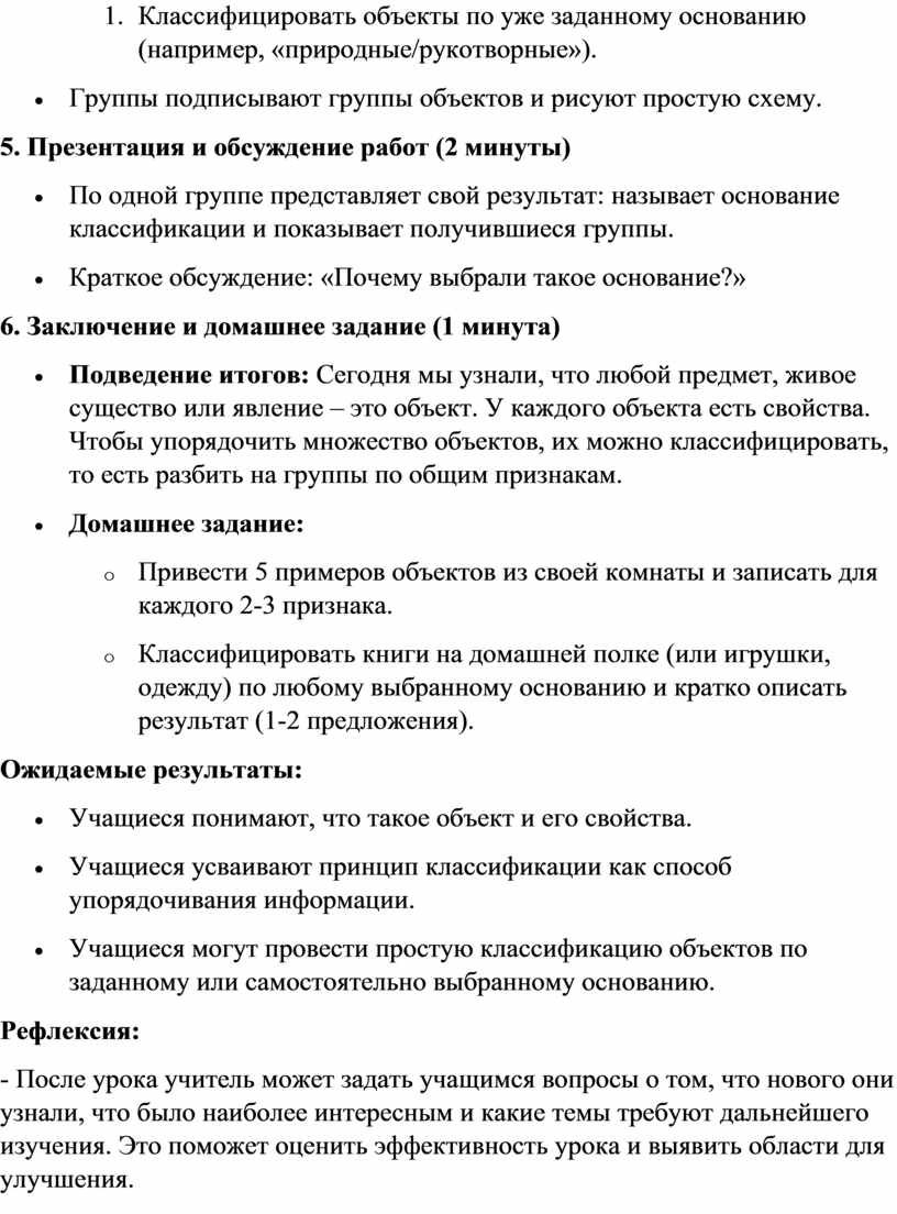 - Учащиеся могут провести простую классификацию