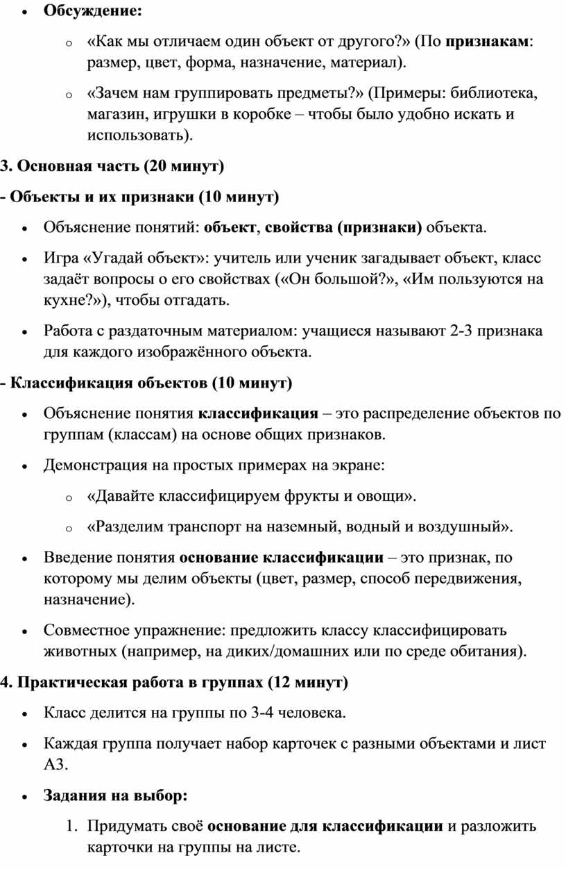 - Совместное упражнение: предложить классу классифицировать