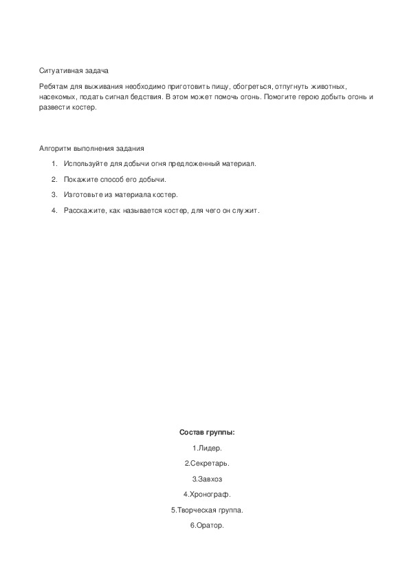 Ребятам для выживания необходимо приготовить пищу, обогреться, отпугнуть животных,