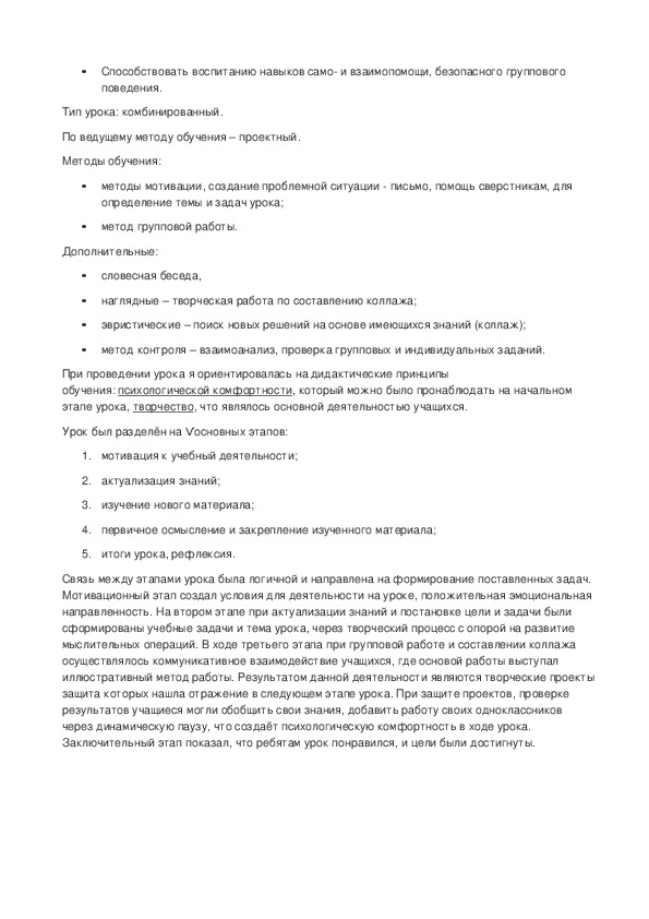 обучения: психологической комфортности, который можно было пронаблюдать на начальном