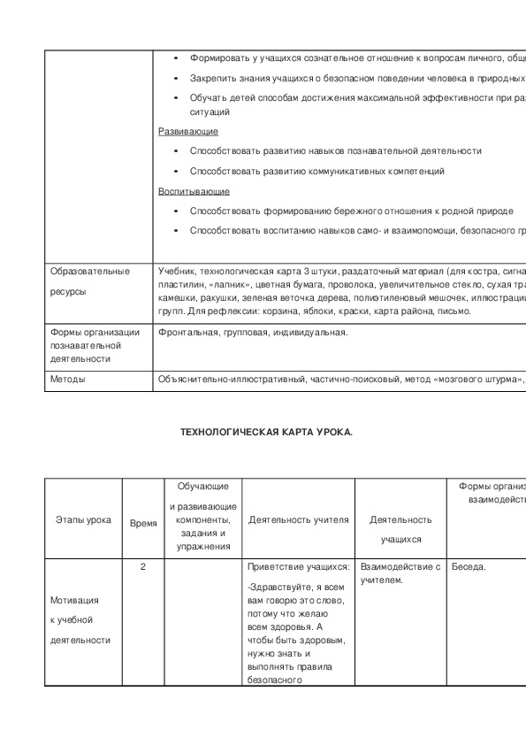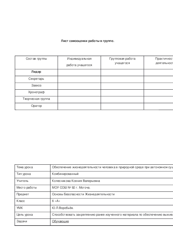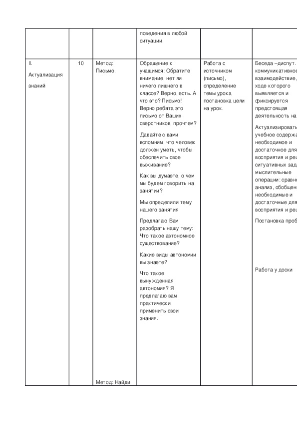 Урок по теме: Обеспечение жизнедеятельности человека в природной среде при автономном