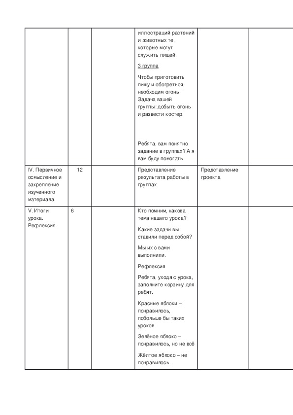 групп. Для рефлексии: корзина, яблоки, краски, карта района, письмо.