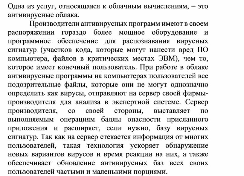 Одна из услуг, относящаяся к облачным вычислениям, – это антивирусные облака.