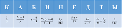 5. Актуализация материала. Учащимся необходимо из представленных выражений определить те, которые являются алгебраической дробью.
