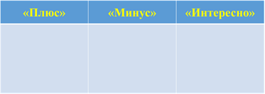 9. Подведение итогов урока: 10. Постановка домашнего задания – Приложение 1 № 1.3. - 1.6. (г), № 1.9. 11. Рефлексия – Приложение 2 «Плюс-минус-интересно» В графу “П” – “плюс” записывается все, что понравилось на уроке, информация и формы работы, которые вызвали положительные эмоции, либо, по мнению ученика, могут быть ему полезны для достижения определенных целей. В графу “М” – “минус” записывается все, что не понравилось на уроке, показалось скучным, вызвало неприязнь, осталось непонятным, или информация, которая, по мнению ученика, оказалась для него не нужной, бесполезной с точки зрения решения жизненных ситуаций. В графу “И” – “интересно” учащиеся вписывают все любопытные факты, о которых узнали на уроке, и что бы еще хотелось узнать по данной проблеме, вопросы к учителю.