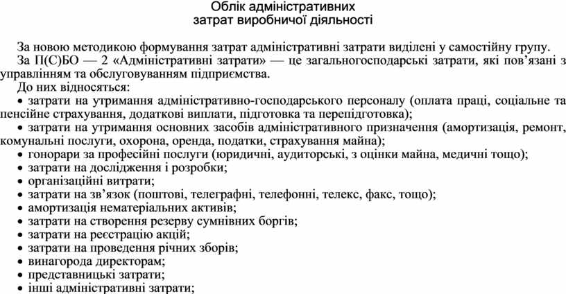 За П(С)БО — 2 «Адміністративні затрати» — це загальногосподарські затрати, які пов’язані з управлінням та обслуговуванням підприємства.
