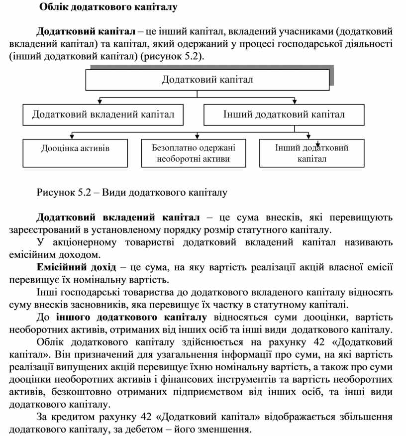 який одержаний у процесі господарської діяльності (інший додатковий капітал) (рисунок 5.2).