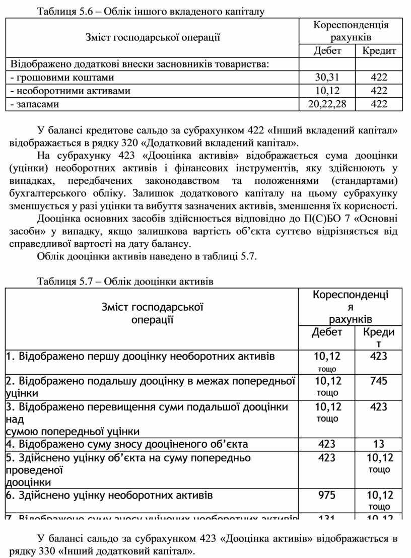 Таблиця 5.6 – Облік іншого вкладеного капіталу
