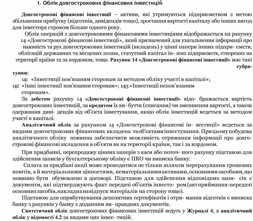 1. Облік довгострокових фінансових інвестицій