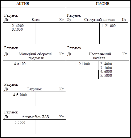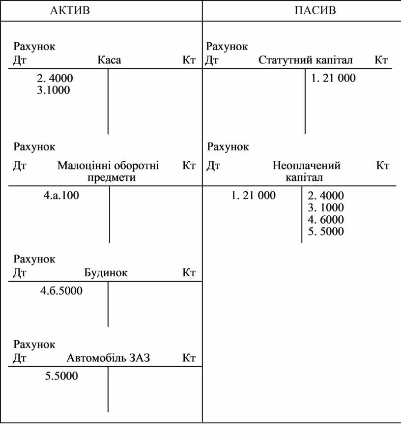— рахунку «Неоплачений капітал» (в аналітичному обліку кожному засновникові відкривається рахунок на суму належного до внеску боргу).