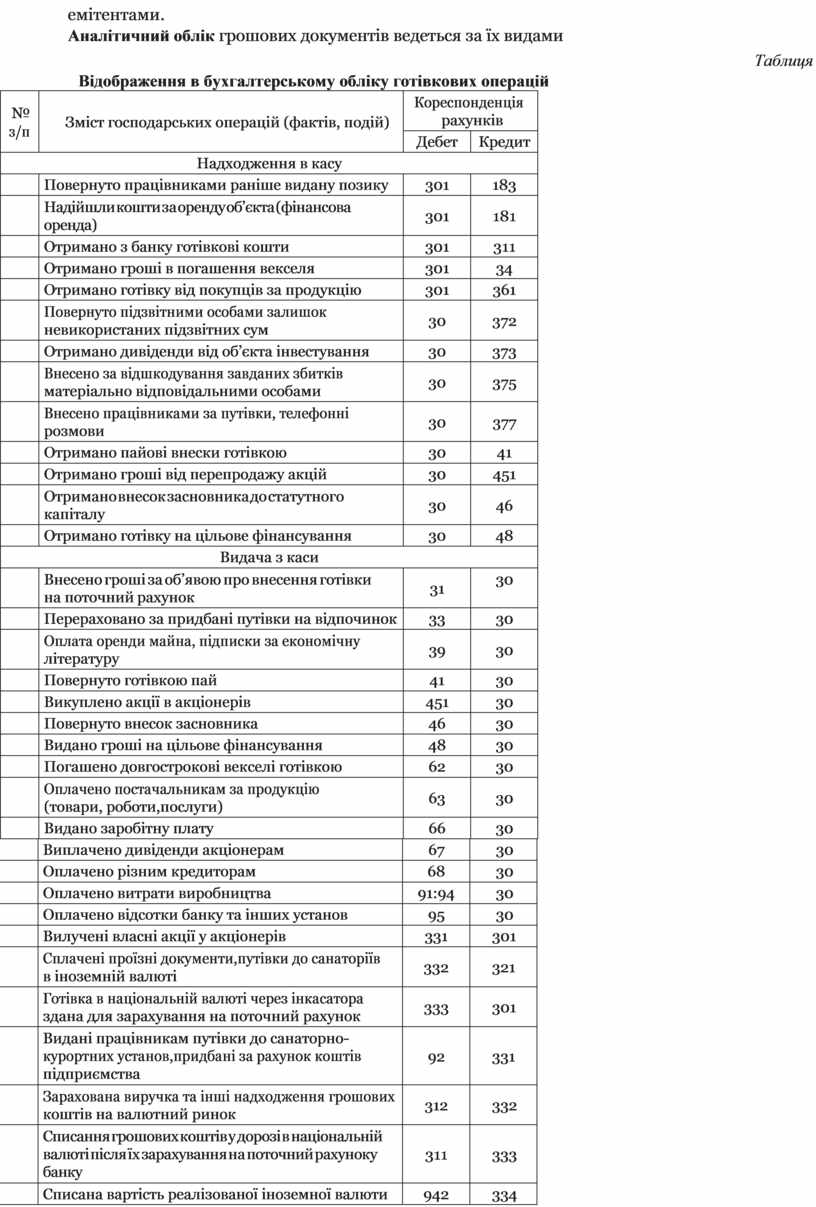 1. Облік готівкових операцій та операцій з іншими грошовими коштами