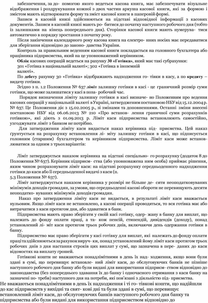 Підприємства за умови забезпечення належного зберігання ка- сових документів можуть вести касову книгу в електронній формі за допомогою комп’ютерних засобів. Програмне забезпечення, за до- помогою якого ведеться касова книга, має забезпечувати візуальне відображення і роздрукування кожної з двох частин аркуша касової книги, які за формою і змістом мають відтворювати форму та зміст касової книги в паперовій формі.