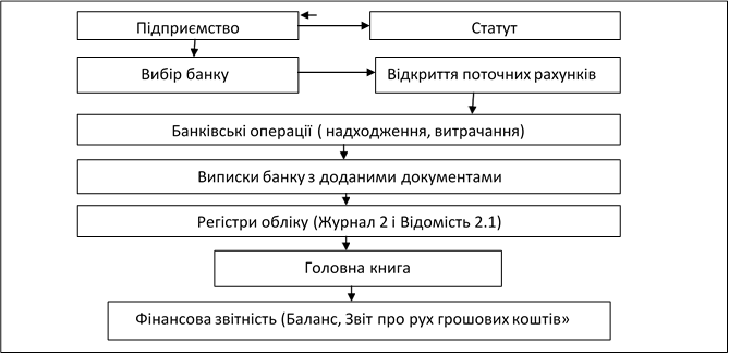 Рис. 2.1. Етапи ведення обліку грошових коштів на поточному рахунку