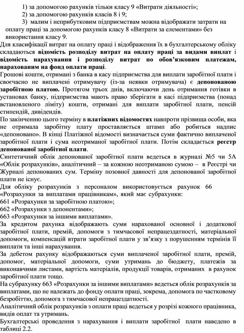 Бухгалтерські проведення з нарахування і виплати заробітної плати наведено в таблиці 2.2.
