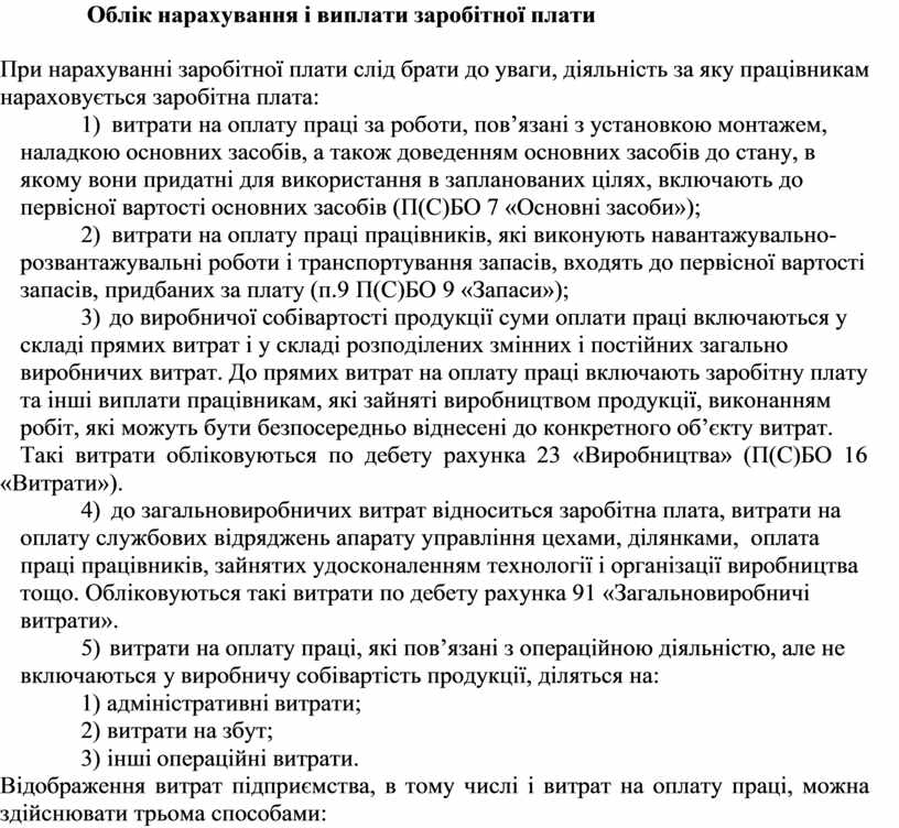 Відображення витрат підприємства, в тому числі і витрат на оплату праці, можна здійснювати трьома способами: