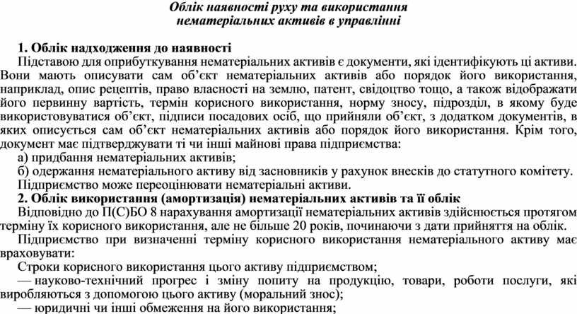 2. Облік використання (амортизація) нематеріальних активів та її облік