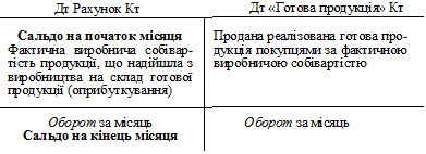 Синтетичний облік готової продукції провадять на активному рахунку «Готова продукція» за фактичною виробничою собівартістю. Якщо поточний облік готової продукції у бухгалтерії підприємства ведеться не за фактичною собівартістю, а за «твердими» обліковими цінами підприємства, то слід на рахунку «Готова продукція» окремо записувати випуск продукції за плановою розрахунковою собівартістю і відхилення фактичної собівартості від планово-розрахункової.