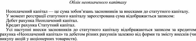 Неоплачений капітал — це сума зобов’язань засновників за внесками до статутного капіталу.