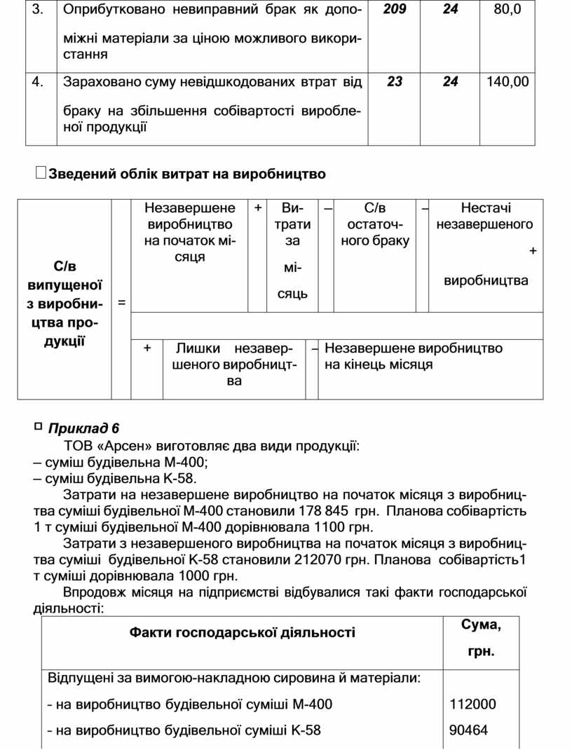 Затрати на незавершене виробництво на початок місяця з виробниц- тва суміші будівельної М-400 становили 178 845 грн. Планова собівартість 1 т суміші будівельної М-400 дорівнювала 1100 грн.