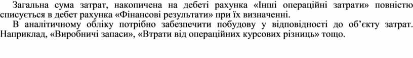 Загальна сума затрат, накопичена на дебеті рахунка «Інші операційні затрати» повністю списується в дебет рахунка «Фінансові результати» при їх визначенні.