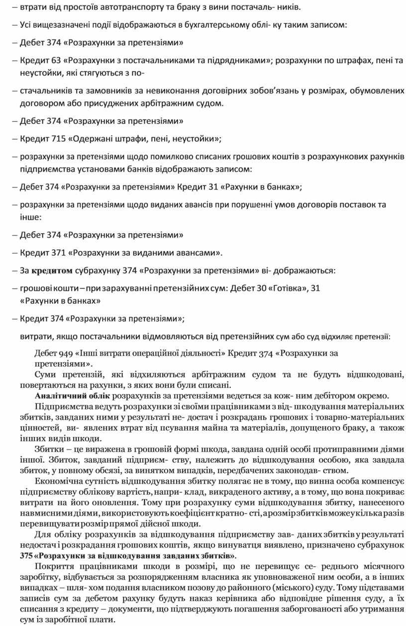 – За кредитом субрахунку 374 «Розрахунки за претензіями» ві- дображаються: