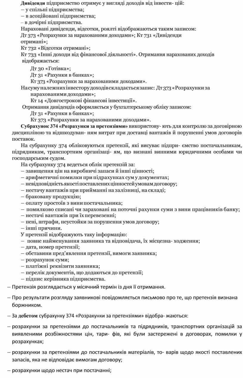 373 «Розрахунки за нарахованими доходами»; 374 «Розрахунки за претензіями»;