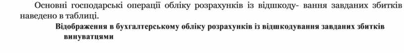 Основні господарські операції обліку розрахунків із відшкоду- вання завданих збитків наведено в таблиці.