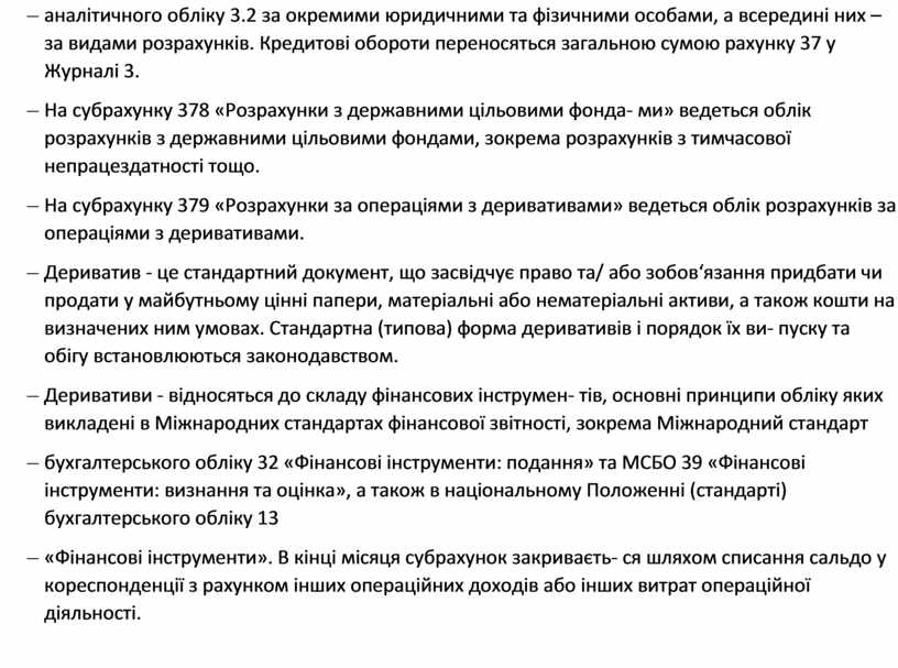 378 «Розрахунки з державними цільовими фондами»; 379 «Розрахунки з деривативами».