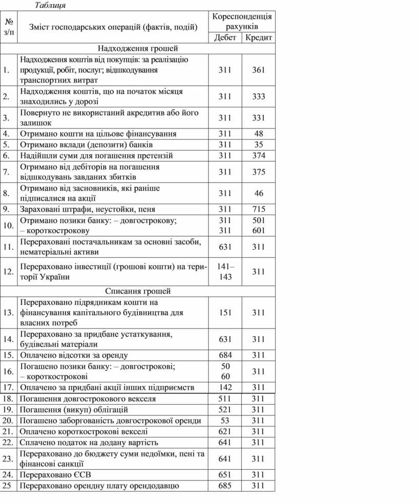 311 «Поточні рахунки в національній валюті» 312 «Поточні рахунки в іноземній валюті»