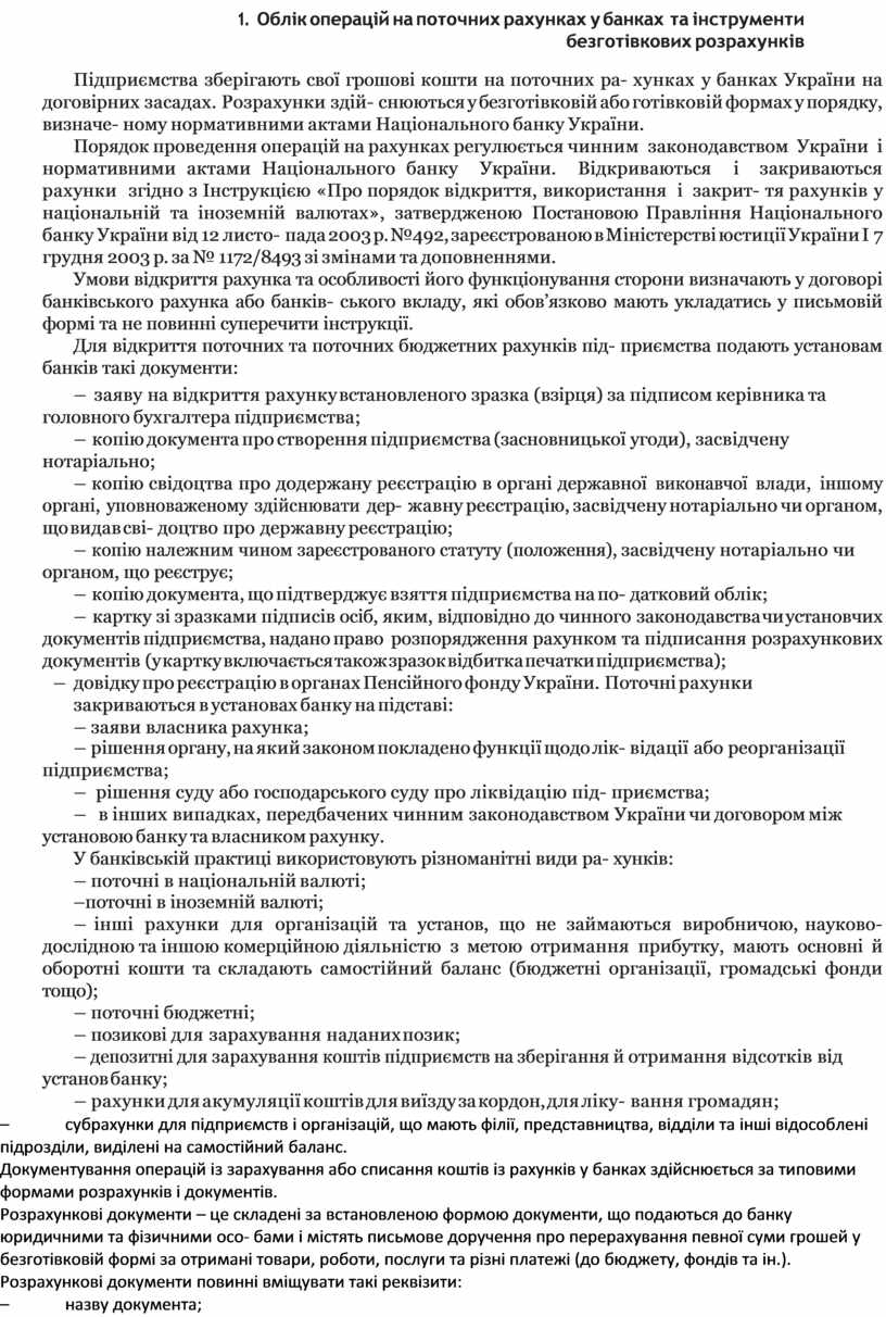 1. Облік операцій на поточних рахунках у банках та інструменти безготівкових розрахунків