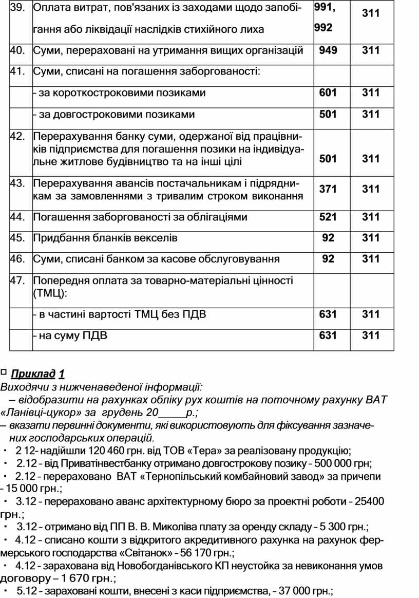 Завдання з обліку операцій на поточному рахунку полягають у відо- браженні на рахунках обліку безготівкових розрахункових операцій.