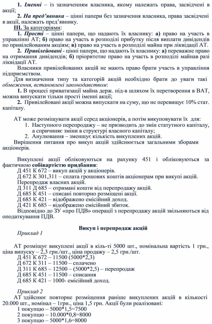1. Наступного перепродажу – не призводить до змін статутного капіталу, а спричиняє зміни в структурі власного капіталу;
